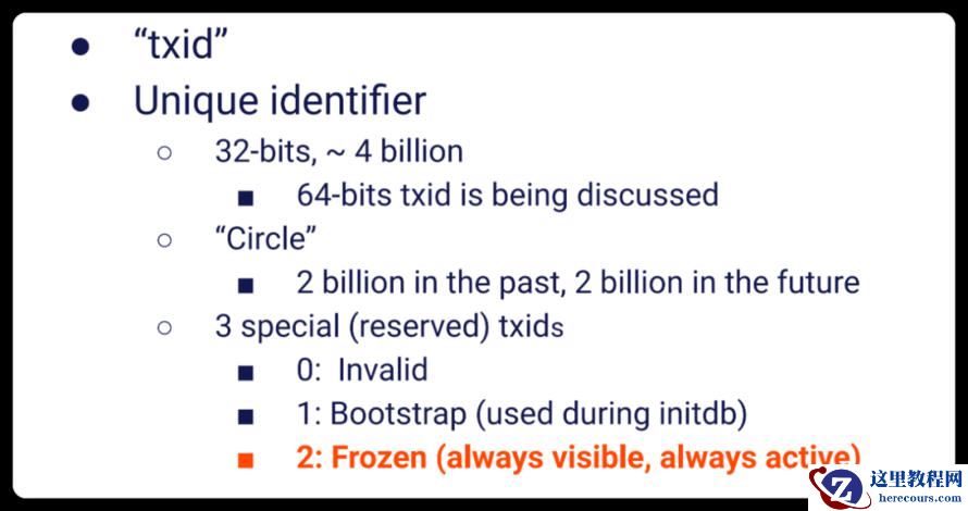txid:"Transaction ID",表示事务 ID,其上限是 32 位无符号整型。对于写入操作,PostgreSQL会分配永久性的事务 ID,而对于只读事务,只会分配虚拟事务 ID,用于节省事务 ID 的资源