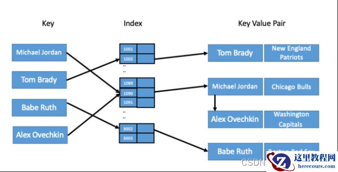 GIN/GIST索引比较特殊,今天我们暂时不讨论,今天重点讨论普通的关系型数据上的索引。B-TREE是我们使用的最多的传统索引,这里就不需要再浪费笔墨来讨论了。Hash索引是PostgreSQL上的一种特殊的索引,针对键值使用一个HASH函数,因此HASH索引只支持等于操作,不支持范围扫描,而且目前HASH索引也不支持复合索引。在Hash索引中,将键值转换为一个HASH值,然后再进行定位,HASH索引不需要枝节点,因此索引的大小会比普通的B-TREE索引要小。其逻辑结构图如下。