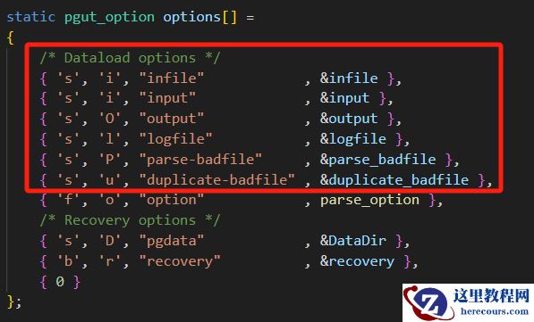 然后再配合getopt_long、option_find和pgut_setopt将传入的相关信息保存到程序中,如