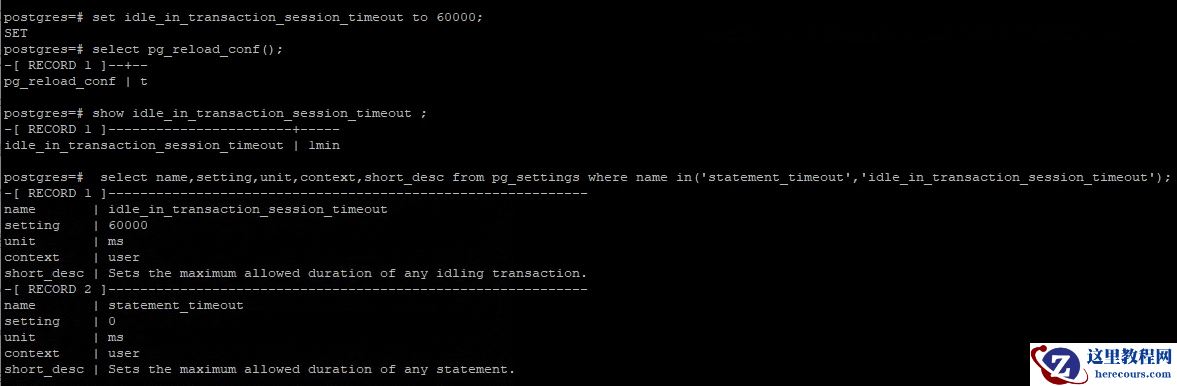 ALTER SYSTEM SET idle_in_transaction_session_timeout = 60000;