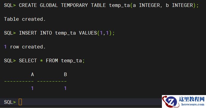 对于Oracle而言,当使用全局临时表的功能之后,仅需要创建一次,其余的诸多会话均可直接使用该临时表,会话间数据不共享,会话退出之后,临时表将被清空。