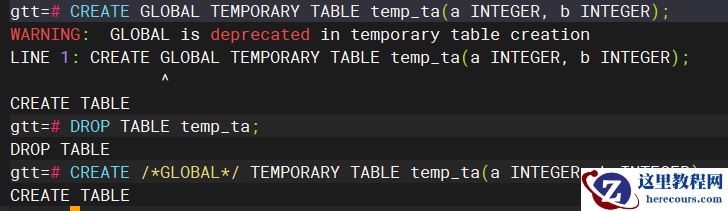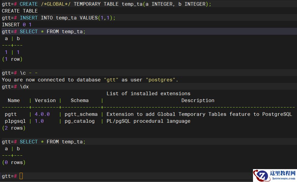 可以参考我的上一篇文章 关于临时表的二三事 ,此处就不再重复进行描述了。 虽然PostgreSQL存在全局临时表的语法,但是实际上并不具备该功能。