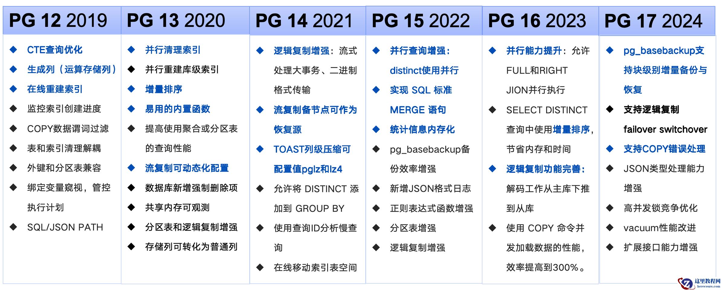 这些新特性和改进不仅提升了数据库的性能和功能,也增强了数据库的可用性和灵活性,使得 PostgreSQL 17 成为一个值得期待的版本。