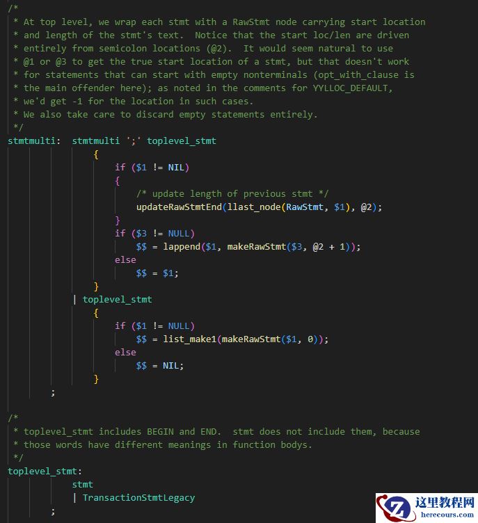 而BEGIN整位于TransactionStmtLegacy的语法规则中,而你又恰巧对词法语法有所了解的话,可以看到这个BEGIN便被移进规约处理完毕了