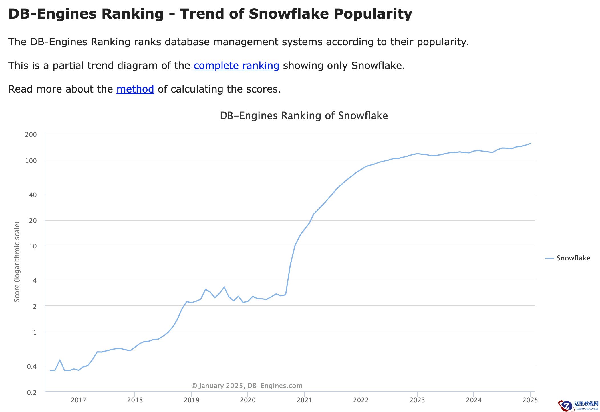 全球数据库排名权威网站DB-Engines,2025年1月16日紧急发文,做了纠正,最新的前三排名是 Snowflake, PostgreSQL, Oracle。