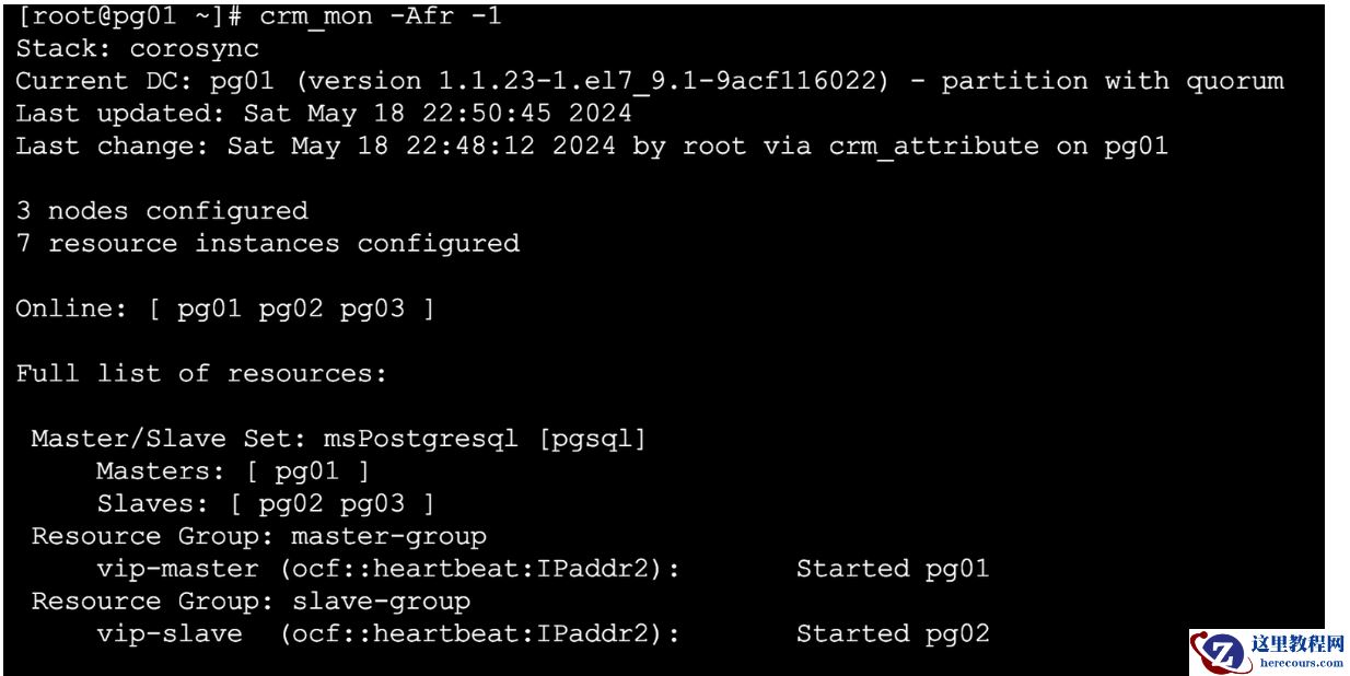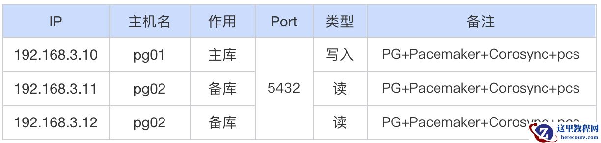 Pacemaker用于资源的转移,corosync用于心跳的检测。结合起来使用,实现对PostgreSQL高可用架构的自动管理。在这套架构中,主库和备库vip-master和备库vip-slave。