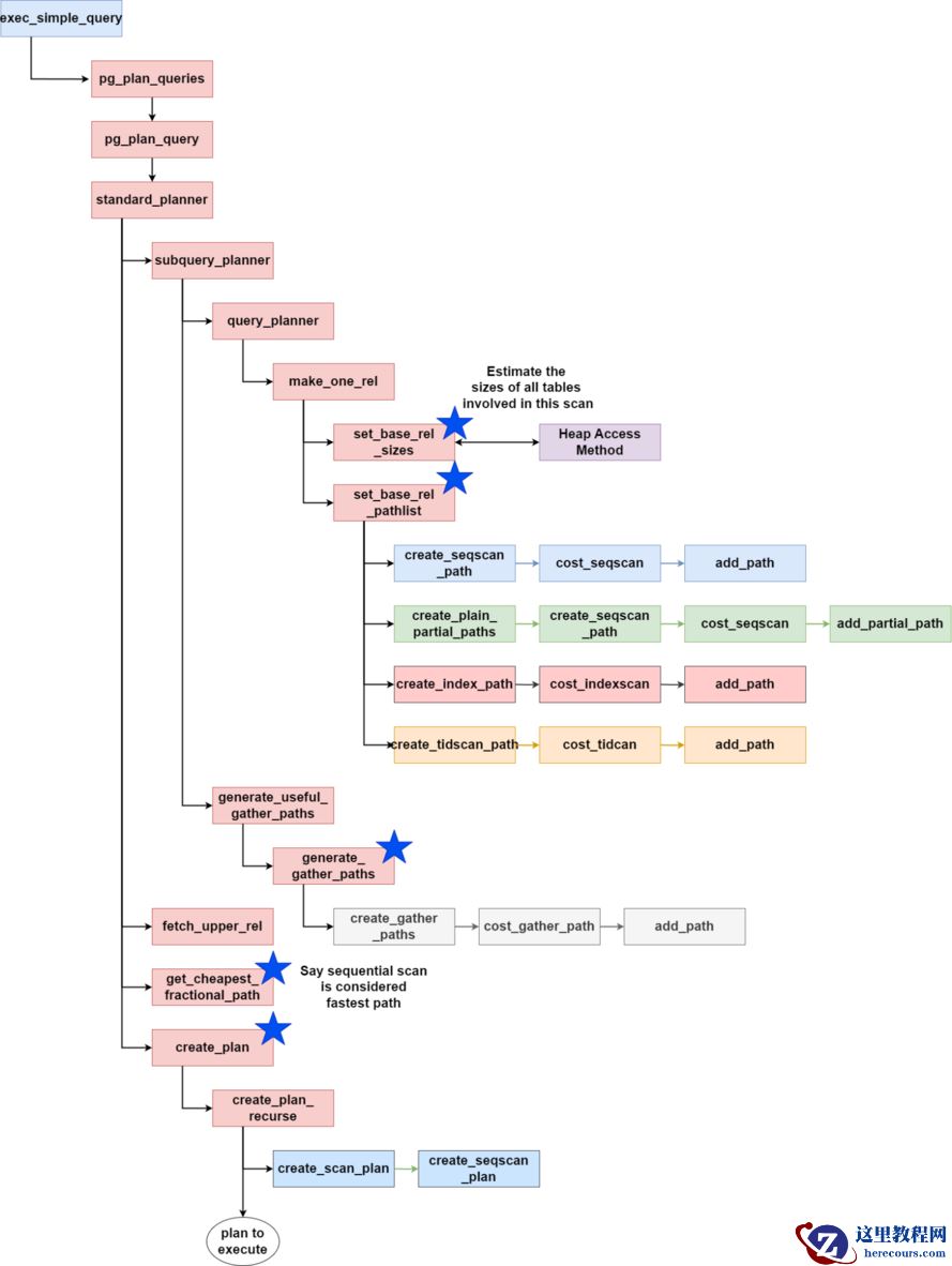 对于一个简单表的顺序扫描,程序将在此处结束。对于更复杂的查询,将有不同的路径构建技术。有关其他路径构建技术,请参阅