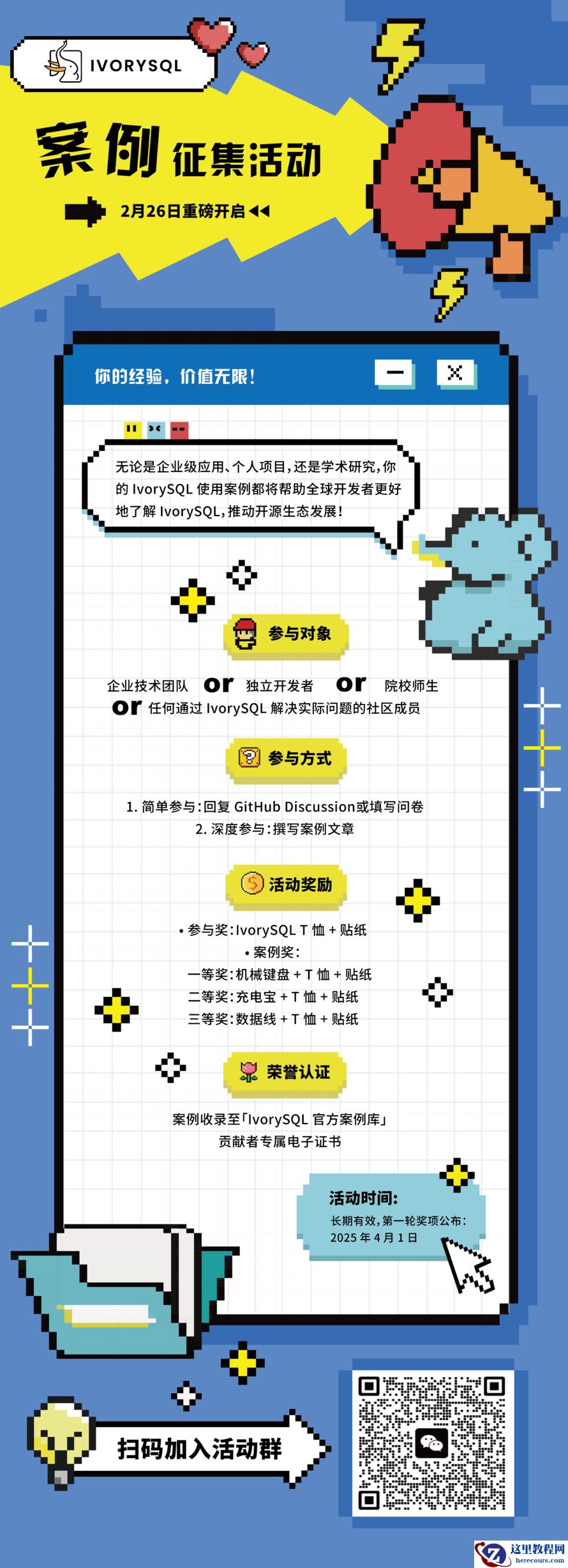 - 入选案例将收录至 「IvorySQL 官方案例库」 ,展示在官网首页