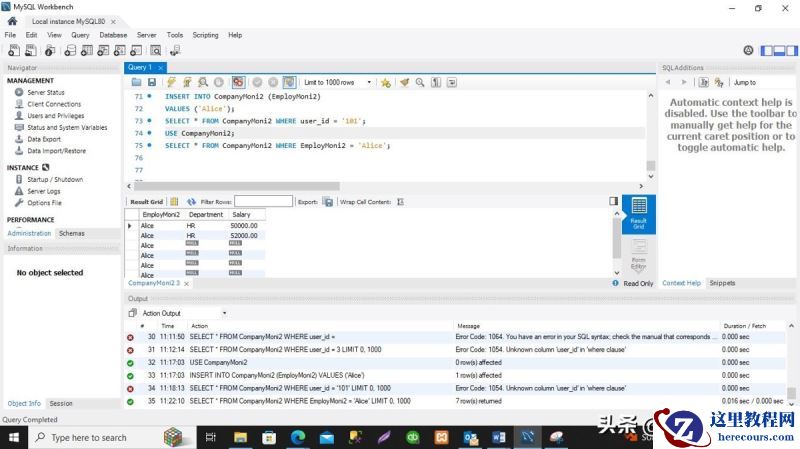 数据库名称 – CompanyMoni2表名称 – CompanyMoni2任务 – 使用以下命令从 CompanyMoni2 表中提取 EmployMoni2 列等于 'Alice' 的所有行:SELECT * FROM CompanyMoni2 WHERE user_id = ;