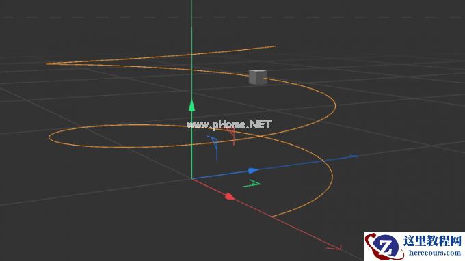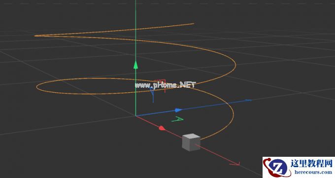 此时我们就能在模型显示区域看到,正方体出现在螺旋线的路径上,如图所示。