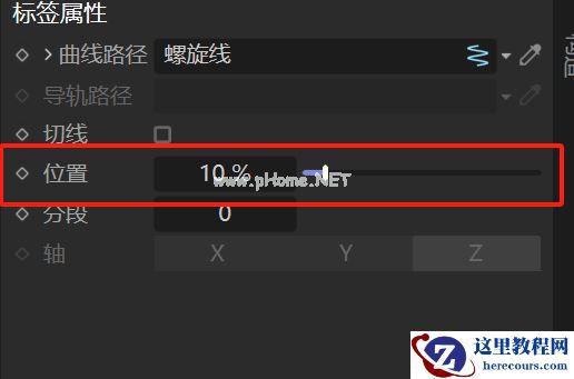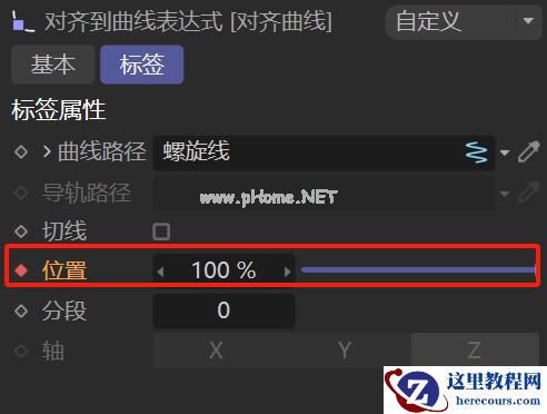 同时我们在对齐到曲线表达式里面找到位置,输入10%。