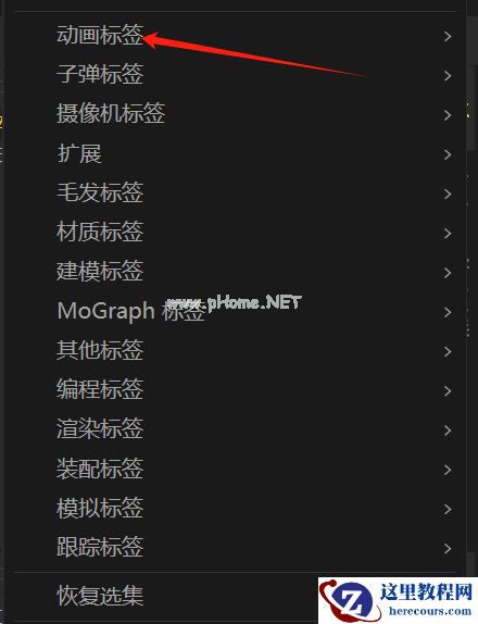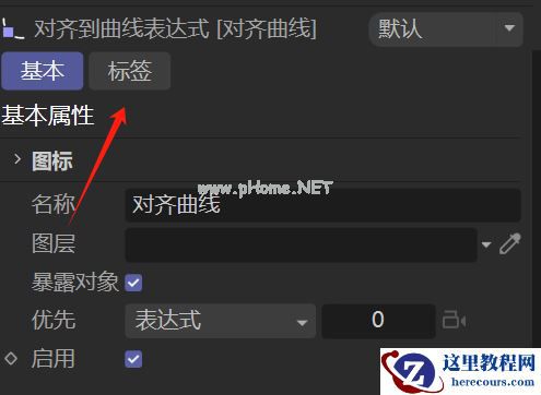 点击它,下方显示出选项面板,选择标签,如图所示。