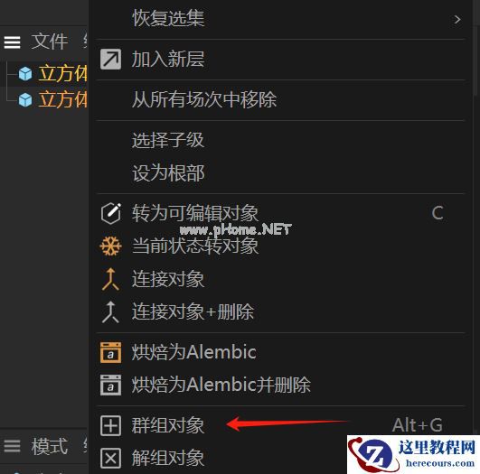 补充一种方法,也可以把多个物体编辑成一个,那就是我们常说的连接对象加删除。这里仍然创建两个正方体,确保它们进入选中状态。
