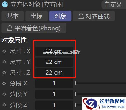 然后创建一个正方体模型,让它的体积小一点方便观察,这里我给它X,Y,Z半径都是22cm。