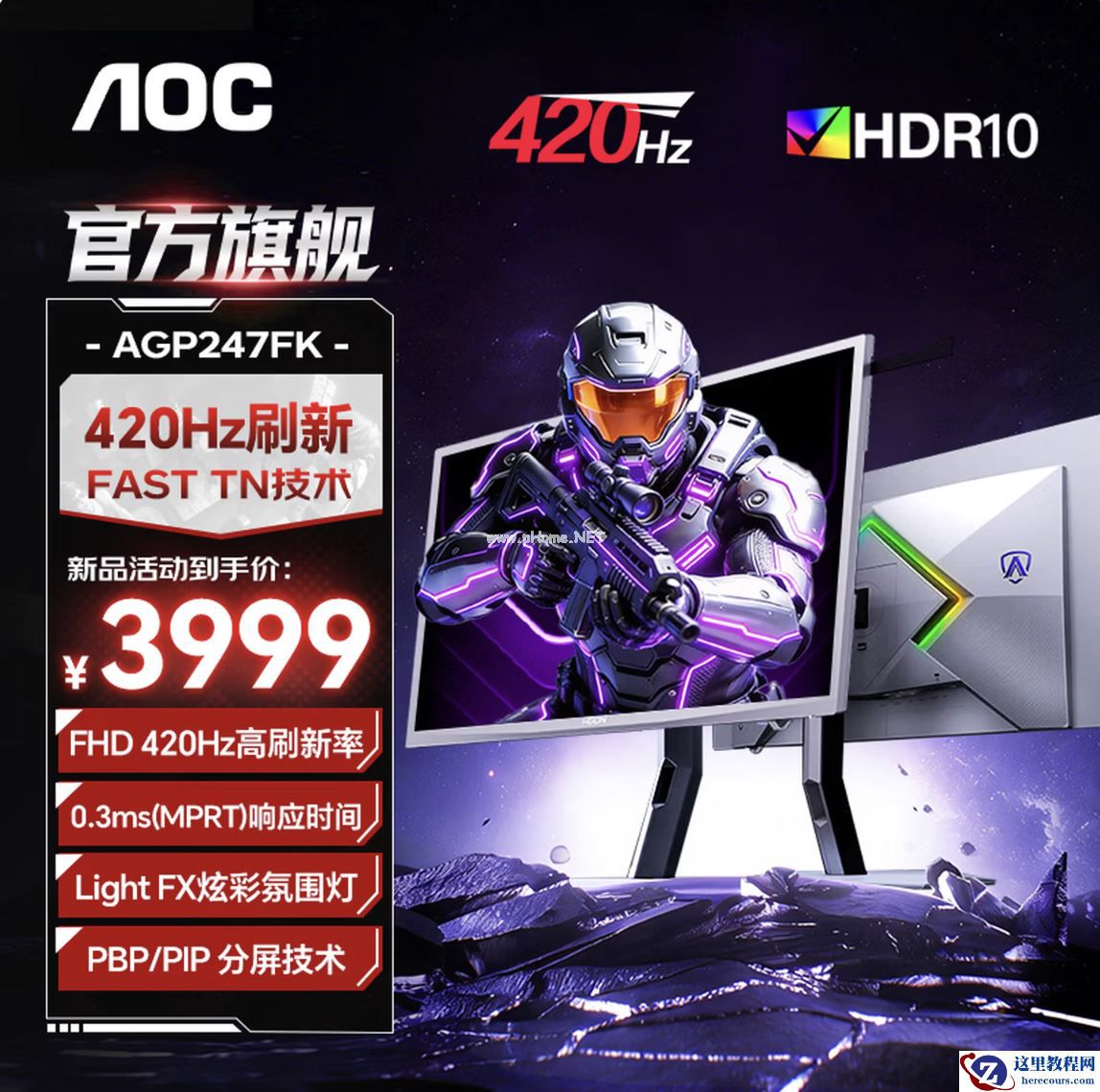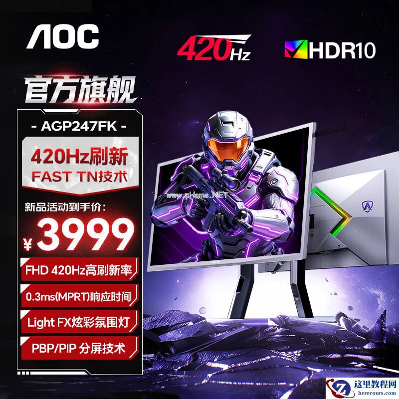 2 月 9 日消息,AOC AGP247FK 显示器现已开售,新品主打 FPS 电竞用户,搭载 1080P FastTN 面板,原生刷新率 400Hz,可超频至 420Hz,售价 3999 元。