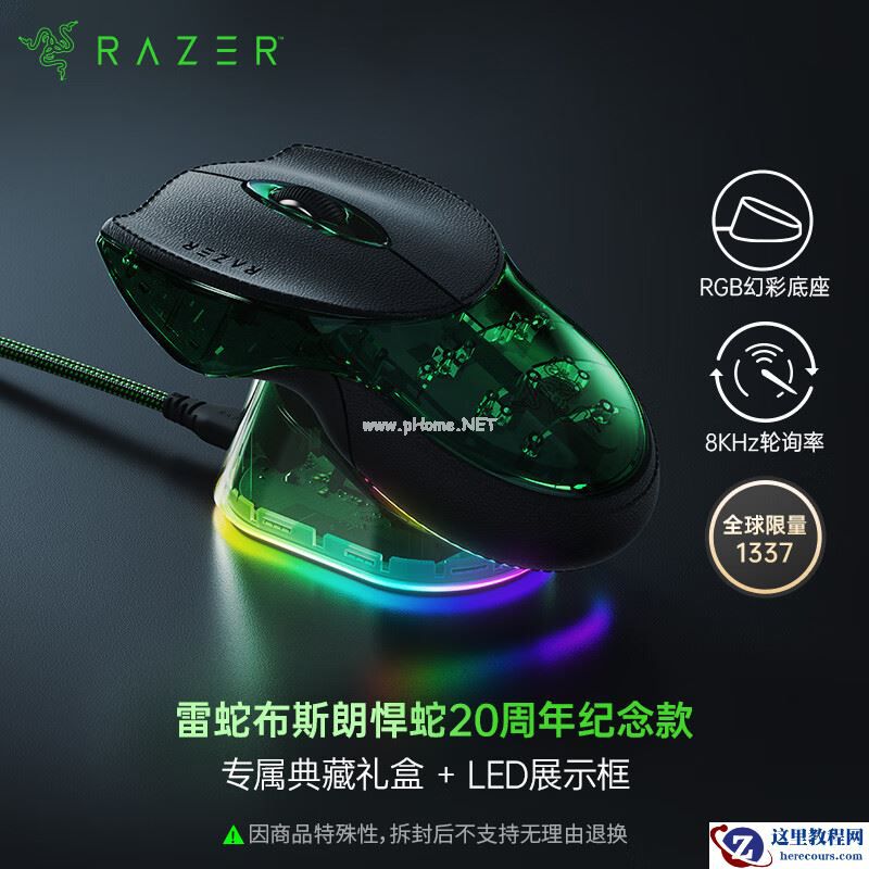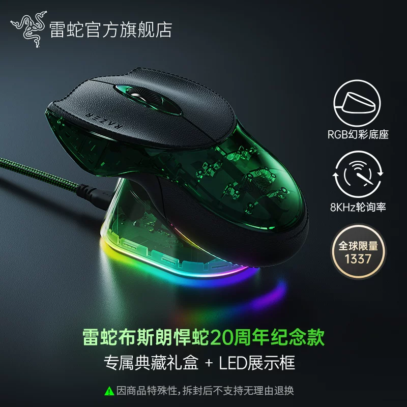 2 月 10 日消息,Razer 雷蛇布斯朗悍蛇 20 周年纪念款鼠标即将于 2 月 11 日 00:00 开启预售,这款产品全球限量 1337 只,每只均配有独一无二的序列号,国行价格 9999 元人民币。