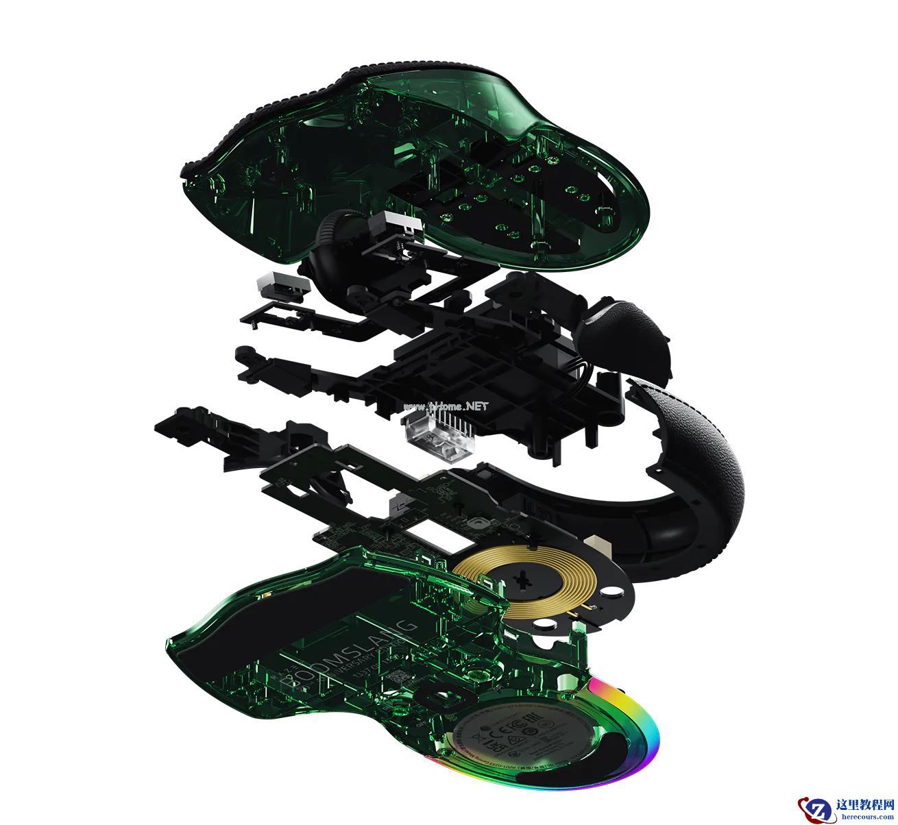 其配备第二代 RAZER FOCUS PRO 45K 光学传感器、第四代 RAZER 雷蛇光学鼠标微动,支持 RAZER HYPERPOLLING WIRELESS 无线技术,左右键上盖材质为 PU 皮革。
