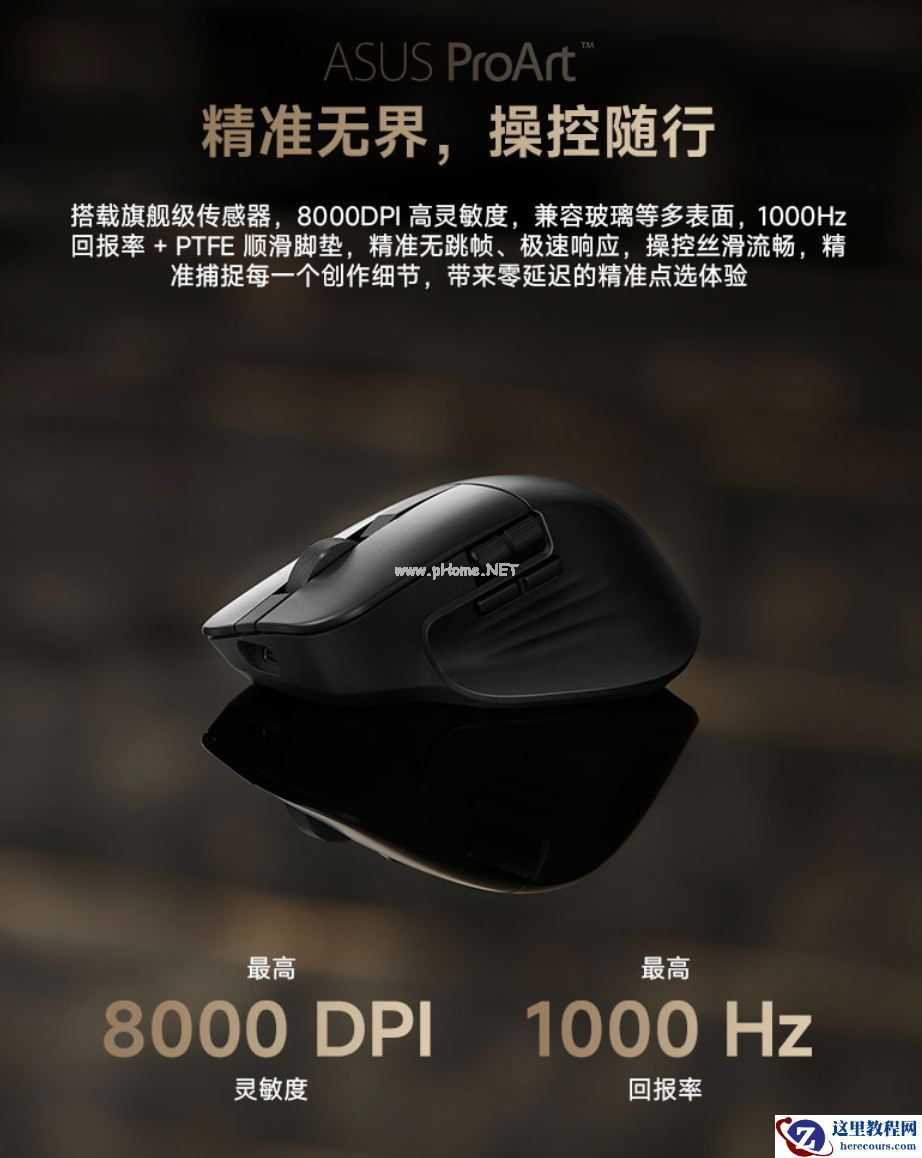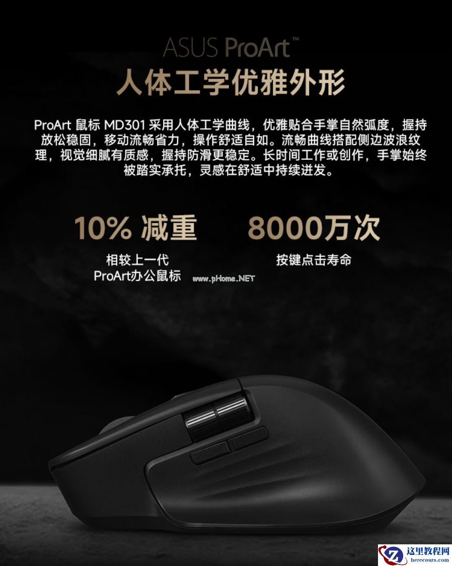 2 月 10 日消息,华硕创意国度 ProArt MD301 办公鼠标现已发售,新品定位中高端,支持三模无线连接,最高 DPI 可达 8000,售价 599 元。