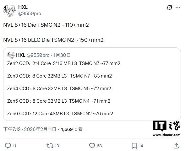 2 月 11 日消息,英特尔下一代 Nova Lake 处理器更多细节逐渐流出。
