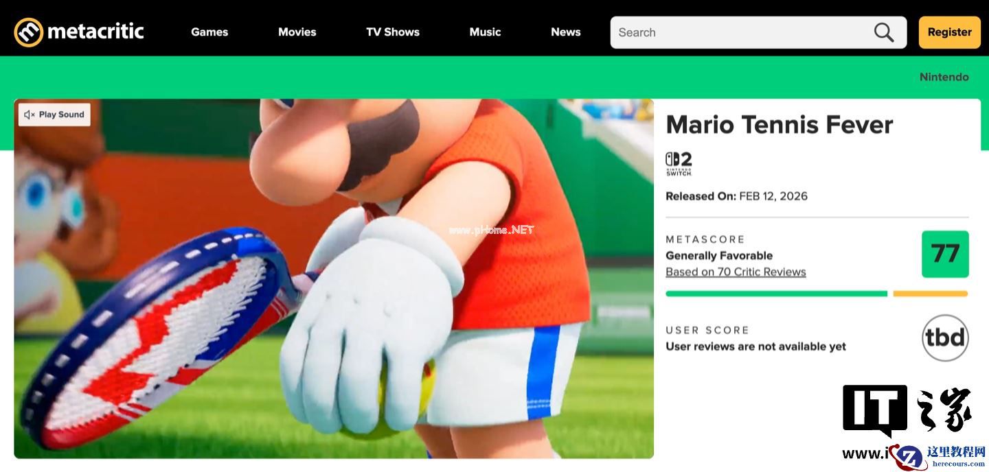 2 月 11 日消息,任天堂旗下《马力欧网球》系列最新作《马力欧网球:狂热(Mario Tennis Fever)》即将于 2 月 12 日(明天)发售,游戏全球媒体评测现已解禁,本作在 Metacritic 上评分 77 分(70 家媒体)。