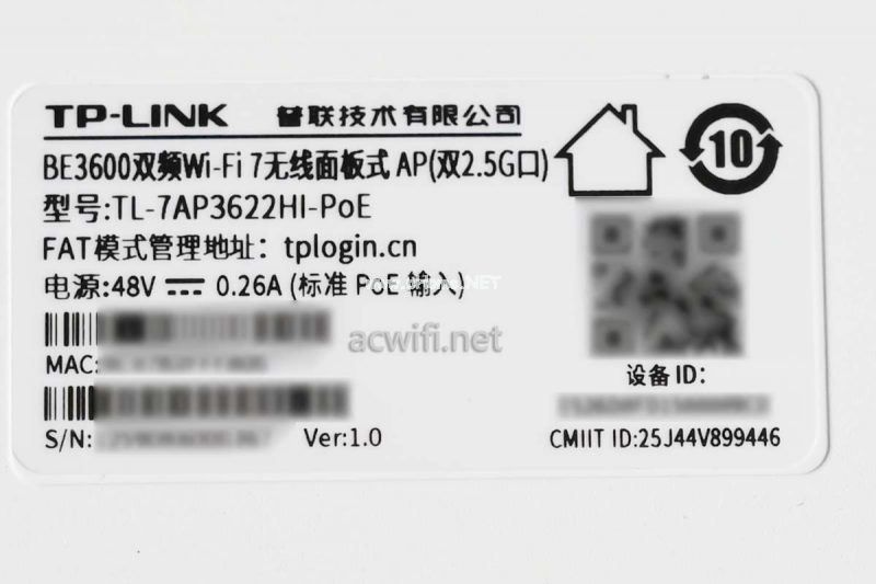 产品铭牌信息:型号TL-7AP3622HI-PoE