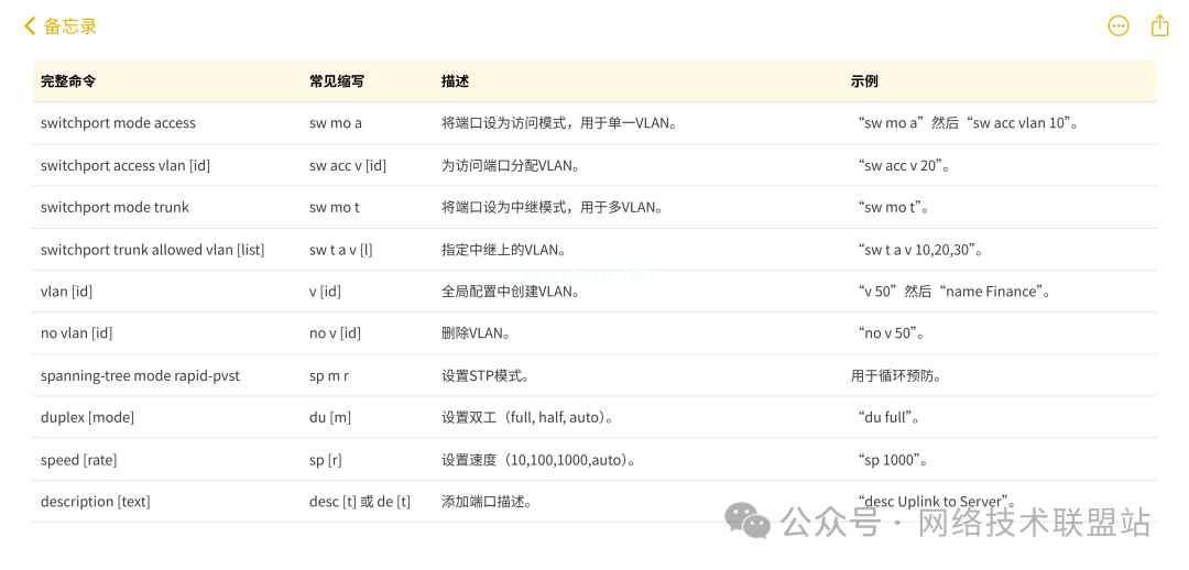 在配置密集任务如新交换机上线时,这些缩写能将设置时间缩短50%。