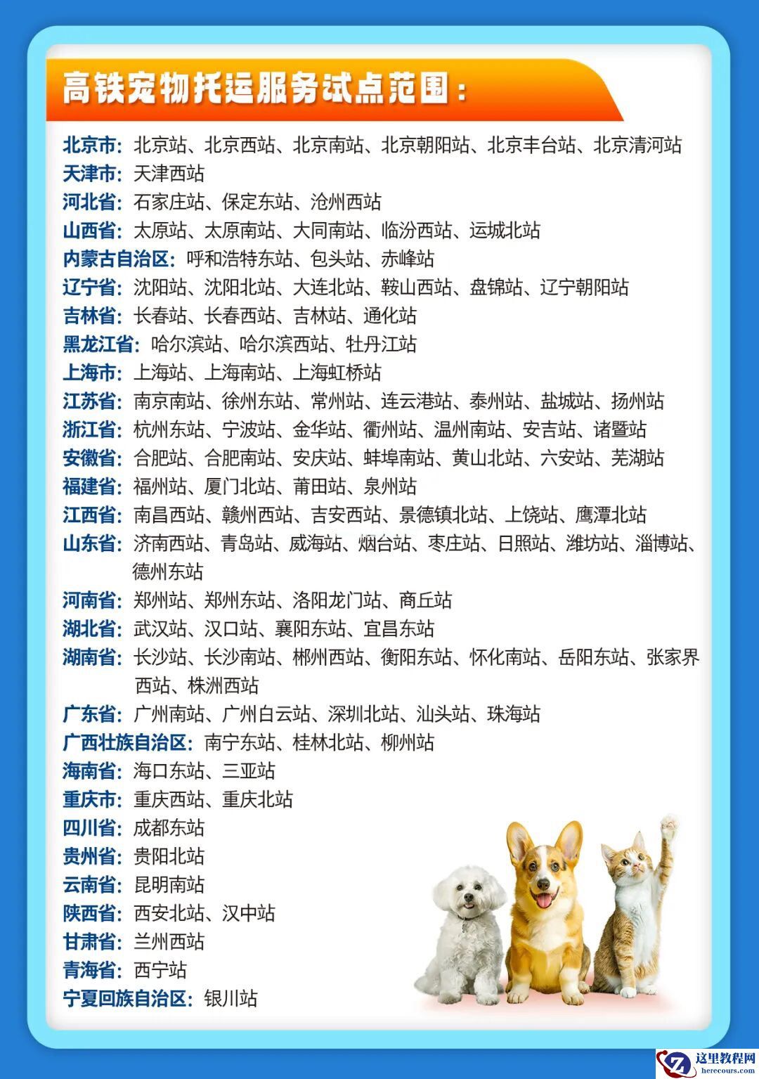 查询获悉,1 月 28 日起中铁快运第四次扩大高铁宠物托运服务试点范围,新增哈尔滨、沈阳、太原、郑州、合肥、上海、赣州西、珠海、桂林北、银川、西宁等 67 个车站,具体办理线路和车次可通过铁路 12306 客户端查询。