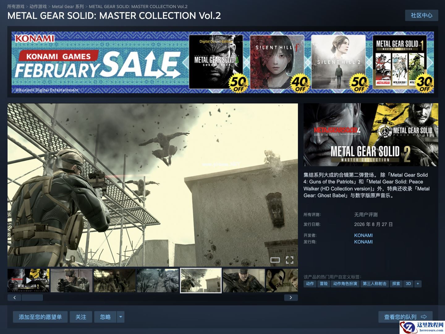 目前,本作已在 Steam 平台开启预购,国区定价 275 元,附 Steam 商品页(https://store.steampowered.com/app/3859630/METAL_GEAR_SOLID_MASTER_COLLECTION_Vol2/)。