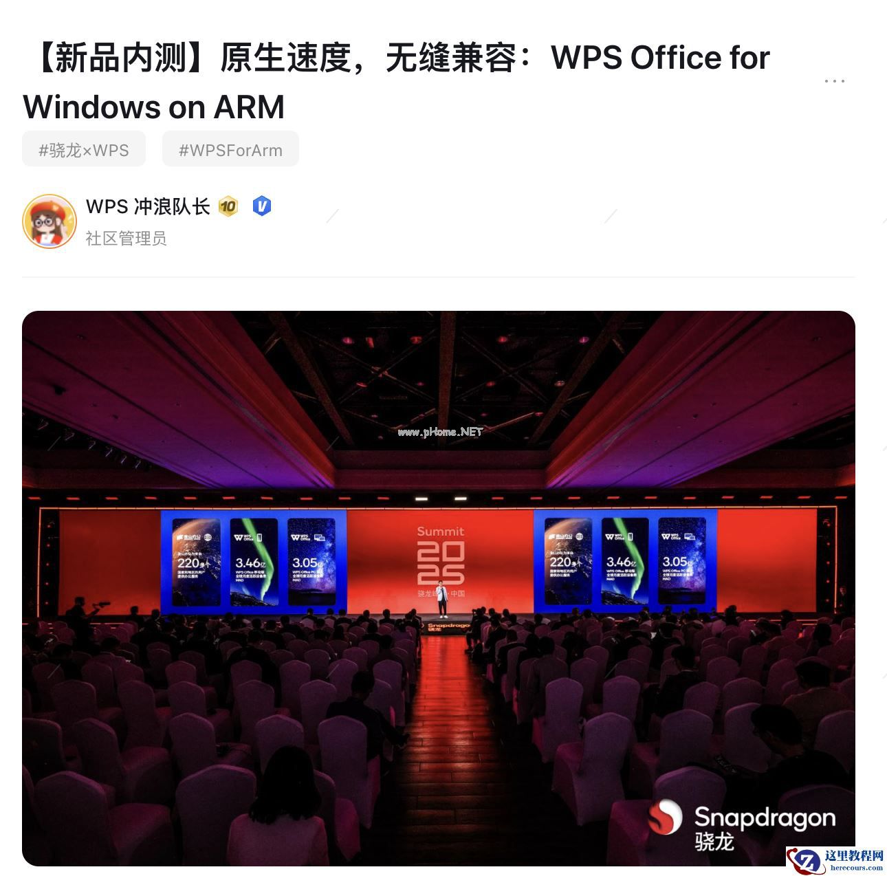 2 月 14 日消息,据官方社区消息,金山 WPS 办公软件 Windows on Arm(WoA)原生版现已开启内测,支持骁龙 X 系列的 Win 笔记本。
