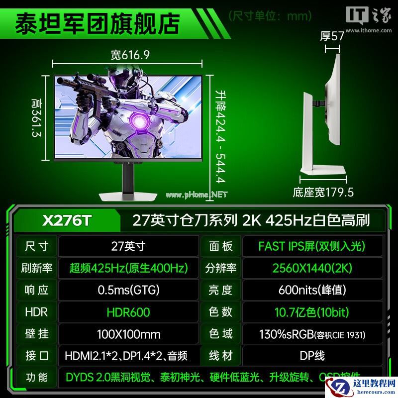 2 月 16 日消息,泰坦军团现已在京东上架了“仓刀 X276T”27 英寸显示器,该机主打 2K 425Hz ,定价为 2499 元,部分地区国补后低至 2374.05 元。