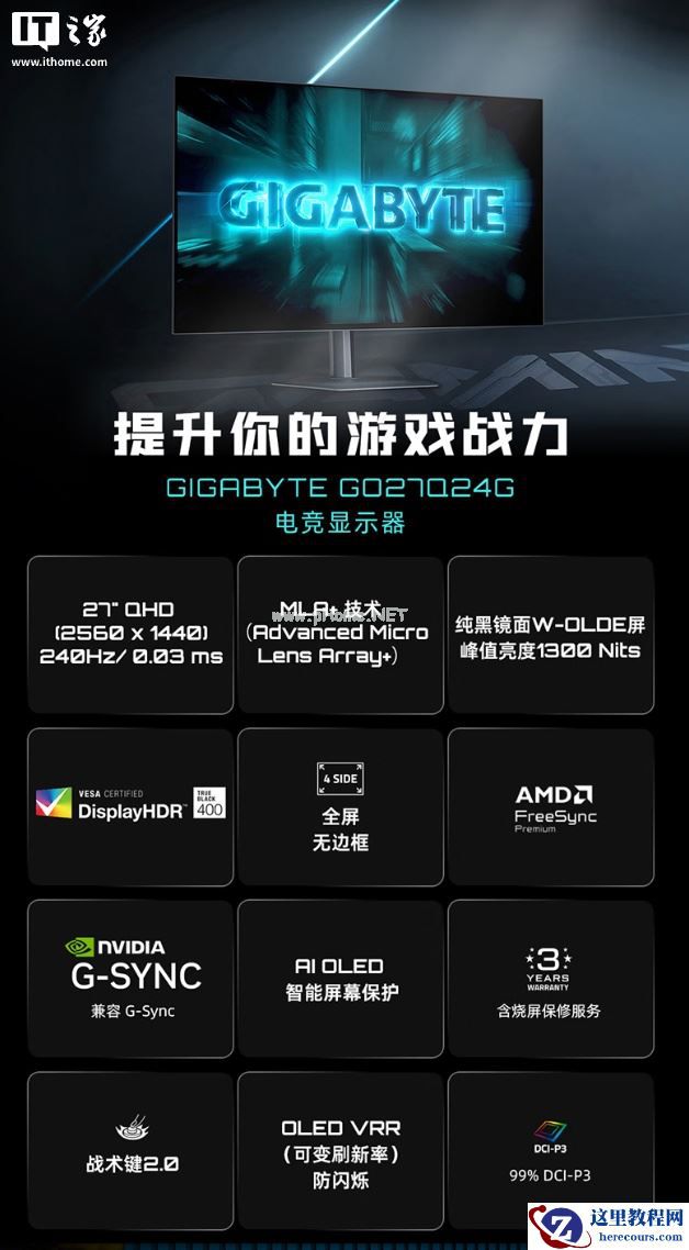 2 月 16 日消息,技嘉旗下型号为“GO27Q24G”的 27 英寸显示器目前已在京东开启首销,该显示器主打 2K 240Hz,定价为 2599 元,首发价 2099 元。