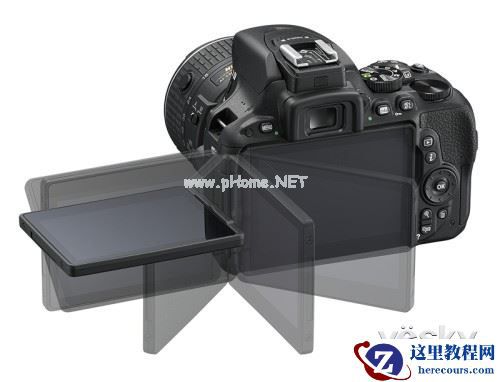 D5500为首款采用触摸屏界面的尼康数码单反相机,经常使用智能设备的用户可以简单、直观地操作。相机搭载约8.1cm(约3.2英寸)的宽视角、约103.7万画点TFT LCD 可翻转显示屏。除了保持足够清晰的可视性,侧面铰接的可翻转显示屏可向左翻开180°,而且在翻开状态下可顺时针旋转至90°、逆时针旋转至180°。这确保了从低到高各种角度的灵活拍摄,甚至可以完成自拍。