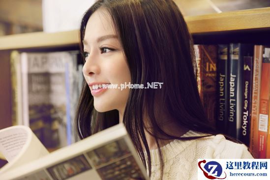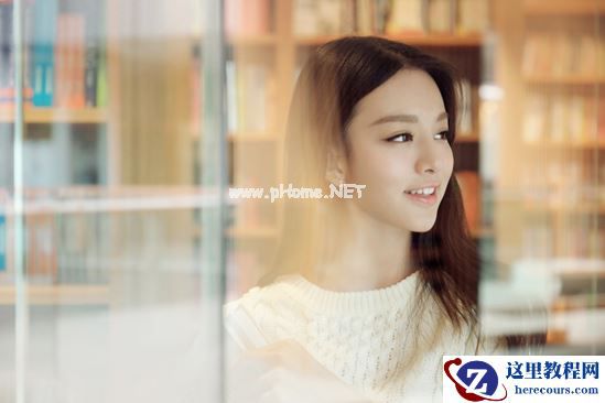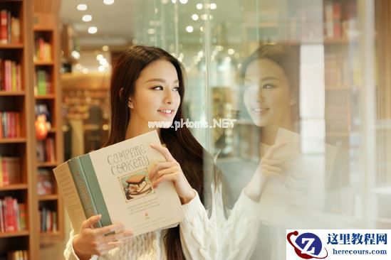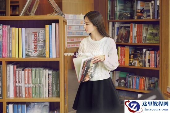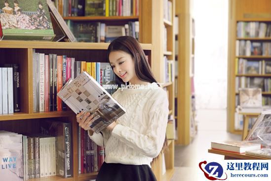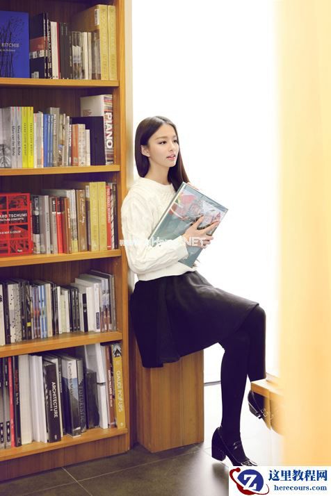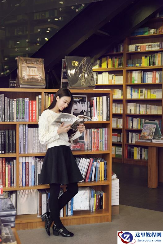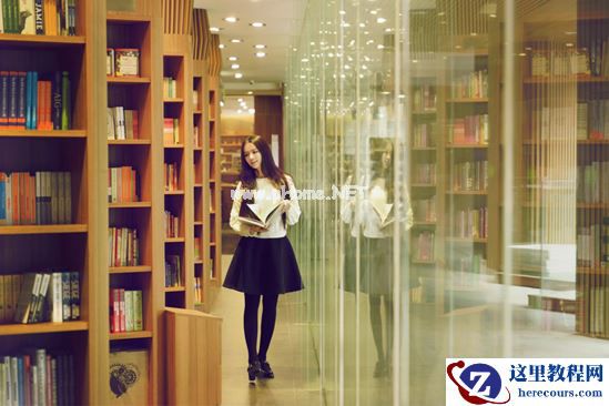 这一张包括以下两张照片都是抓拍,需要模特自由发挥,然后偷偷躲在对面书架后面拍摄,可以要求模特就慢慢的走一走,看一看书,但是注意不要背对镜头。