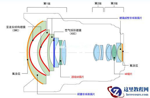佳能EF 11-24mm f/4L USM镜头应用了EF镜头的优秀光学技术,并进行了全新设计。在其11组16片镜片结构中,使用多达四片非球面镜片(包括第一组镜片中的大口径研磨非球面镜片),以及一片超级UD镜片和一片UD镜片,创造出了始于11mm的超广角变焦镜头,并在整个变焦范围内实现高画质。其中,镜头前端第一片外径为87 mm的研磨非球面镜片为11 mm视角的实现做出了巨大贡献,它有效避免了前镜片过大,并达到畸变补偿效果;第二片镜片为大口径GMo(玻璃模铸)非球面镜片,实现了进一步的画面畸变补偿;第三片和第十六片镜片同样为GMo(玻璃模铸)非球面镜片,有效实现了场曲校正,提高了周边图像的画质。此外,一片超级UD镜片和一片UD镜片的应用,则实现了对广角镜头中容易出现的倍率色像差进行校正。