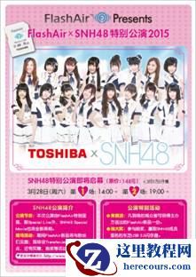 继2014年首次合作推出“东芝特别公演”就受到粉丝火爆追捧后,东芝FlashAir将再度携手SNH48,于2015年3月28日在上海SNH星梦剧院隆重推出两场“东芝FlashAirx SNH48特别公演2015”。