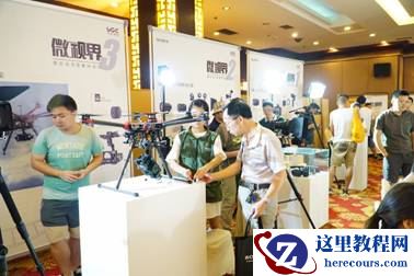 (用户在全画幅微单™索尼A7S航拍解决方案专区仔细观摩DJI S900六轴飞行器)