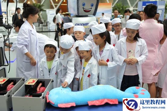 在医疗展示区,奥林巴斯展出了整体工作台OAW-C,公众不仅可以穿上医生工作服近距离参观合影,还能在工作人员的指导下,小试身手,亲身体验做医生的职业转换。此外,一根透明内窥镜的样品也出现了产品展示区,吸引了众多公众驻足参观,很多人都表示自己是第一次这么近距离的与内镜接触,纤细的直径和柔软的设计,让他们对内镜检查有了新的认识。“以往只是听说‘下胃管’非常难受,但今天看了内镜‘本人’,觉得内镜检查可能并没有想象的那么可怕”,一位观众如是说。这些布置成功的激发了参观者对奥林巴斯医疗领域的兴趣,为满足大家的求知欲,奥林巴斯在现场还设置了多媒体大屏和资料展板,向大家展示了奥林巴斯多年来倡导“三早”理念和爱胃公益行动的成果,让市民们更有信心战胜疾病、保持健康。