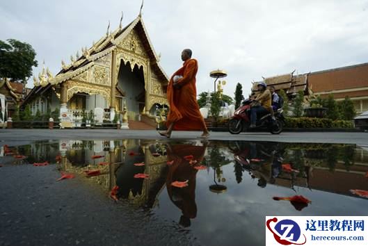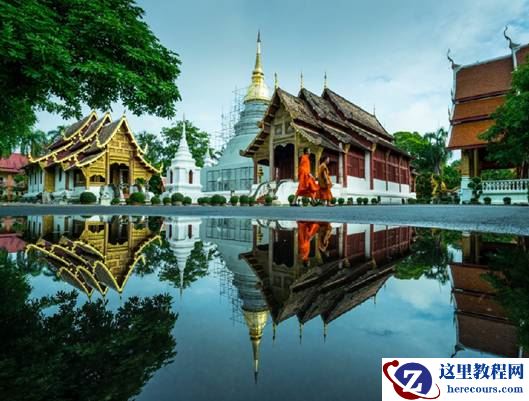 在清迈的寺庙里参观时了解到,清晨庙里的和尚无论老少,都要外出化缘,他们每天的食物就是靠早上化缘回来的。我们都觉得这种自力更生的生活方式很感人,因此早早地就赶来寺庙周围拍摄和尚每天要干的第一件事:化缘。我发现马路边因为下雨积了几滩水,马上觉得又可以利用翻折屏拍摄倒影,同时Vario-Sonnar T* 16-35mm F2.8 ZA SSM 的16mm端的广角可以把一平方米的积水拍成小水塘,增加了画面的视觉效果。
