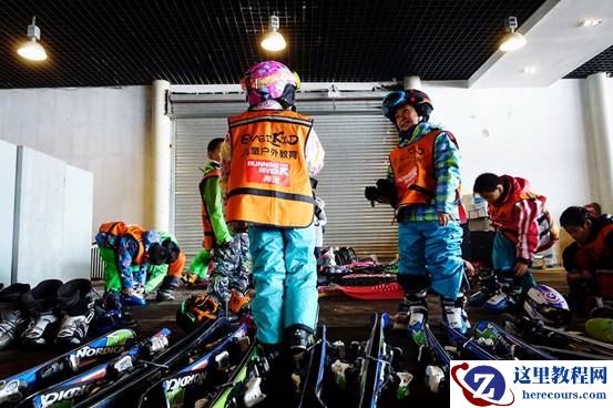 孩子们此时正在迅速的穿戴和检查自己的滑雪装备,而在室内光线不好的环境下,也可以用索尼黑卡相机放心拍摄,不用担心拍虚或者有严重的噪点出现。小朋友们滑雪最重要的就是安全,所以在装备上头盔是必须佩带的。头部对每一个人来说都是非常脆弱的部位,如果滑雪在一定速度下摔倒会由于惯性很容易磕到头部。没有头盔保护的话后果不堪设想。Everkid儿童户外永远把安全放在第一位,每个滑雪的小学员必须佩戴头盔,各种图案的头盔看起来也是十分的炫酷呢。