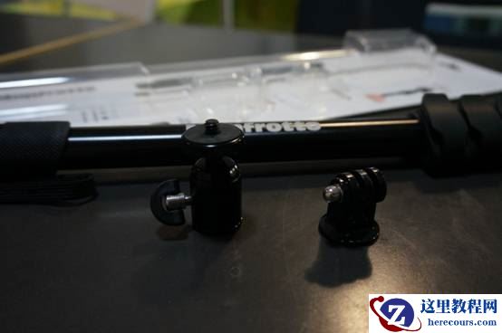 做自拍杆使用时,仅需将底部橡胶脚钉取下,把球型云台安装至末端螺丝,即可连接相机定位拍摄。