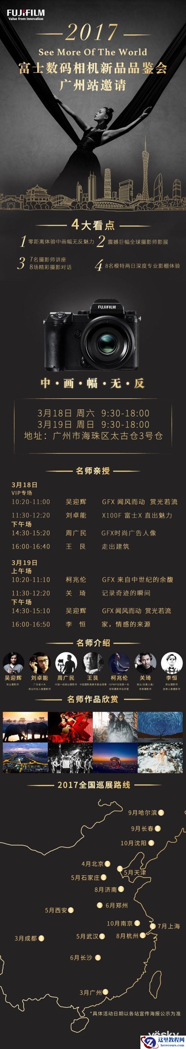 继2017年1月富士上海发布会后,SEE MORE OF THE WORLD富士全国巡展活动暨富士数码相机新品品鉴会将在全国陆续开启!3月将分别亮相羊城广州及天府之国成都!