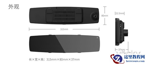 小蚁(YI)智能后视镜行车记录仪外观尺寸及结构