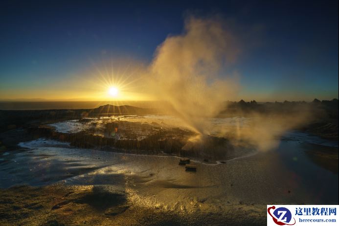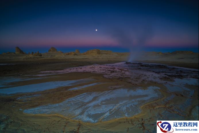 太阳出来,阳光洒在无垠的荒凉大地上,水蒸气上升和光线折射出了美丽的彩虹,FE 16-35mm F2.8 GM镜头+索尼全画幅微单A7RII良好的色彩表现帮我如实地记录下了这个画面。