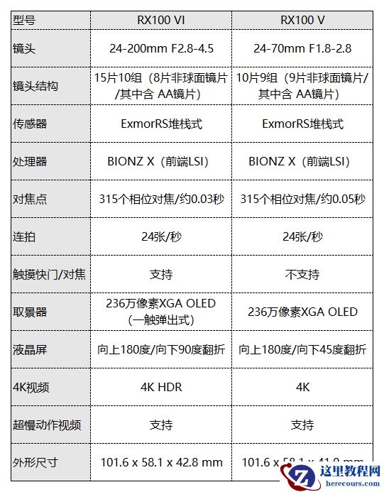 从参数对比上看,全新索尼黑卡RX100 VI相较于RX100 V来说最大的进化在于镜头,全新设计的蔡司Vario-Sonnar T*24-200mm的焦段范围拥有8倍的光学变焦能力。从应对拍摄题材和场景的角度而言,无疑是对前代的一个补足。此外,在对焦速度上,索尼黑卡RX100 VI相较于上代提升了约0.02秒,达到了0.03秒的最快对焦速度。还有令人值得欣慰的是加入了触摸屏和4K HDR视频功能。