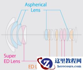6片ED镜片(包括3片超级ED镜片)用于控制色散。这种设计