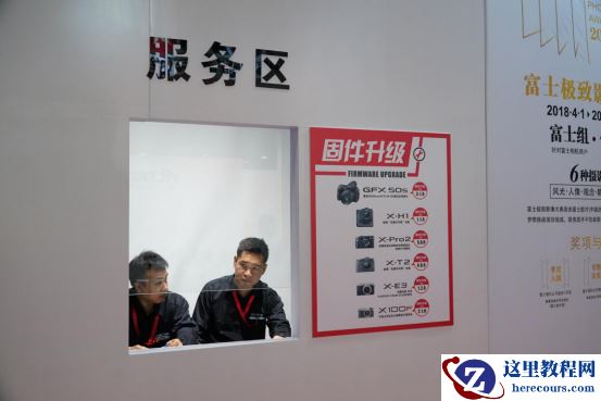 服务区除了常规的机身、镜头的清洁之外,还能现场由工作人员帮忙进行相机的固件升级。十分贴心周到。想要体验高速连拍的畅快感和中画幅高像素所带来的冲击力的话,欢迎各位前往P&E 2018 T1201展位的富士展台。