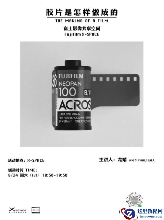 8月10日和8月17日, X-SPACE将携手剑诚123暗房举行富士ACROS黑白胶片拍摄&冲洗体验活动。本次活动包括胶卷机使用讲解,外出采风拍摄,黑白胶片冲洗体验,同时我们也将远程连线暗房工作人员直播讲解黑白照片放大过程。注:本次活动需自行携带135胶片相机哦!