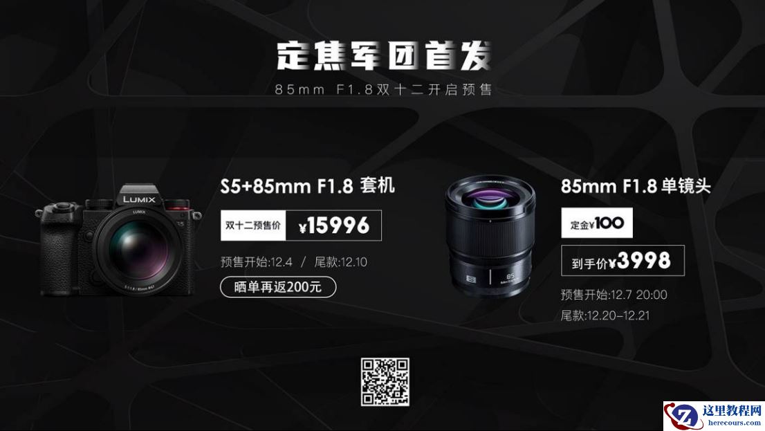 今年11月4日,松下推出了全新大光圈中焦定焦镜头LUMIX S 85mm F1.8(S-S85),优异的散景效果和轻便的体积,使得此镜头获得了非常大的关注。在双十二期间,S85镜头和S5+85mm镜头套机正式上市,开启预售,数量有限。