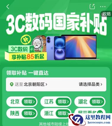 消费者到京东APP搜索“3C国补”即可进入国补活动会场,购买手机、平板、智能手表(手环)3类数码产品(单件销售价格不超过6000元),按产品销售价格的15%享受补贴,每位消费者每类产品可享1件补贴,每件补贴不超过500元,3个品类每人可省1500元。