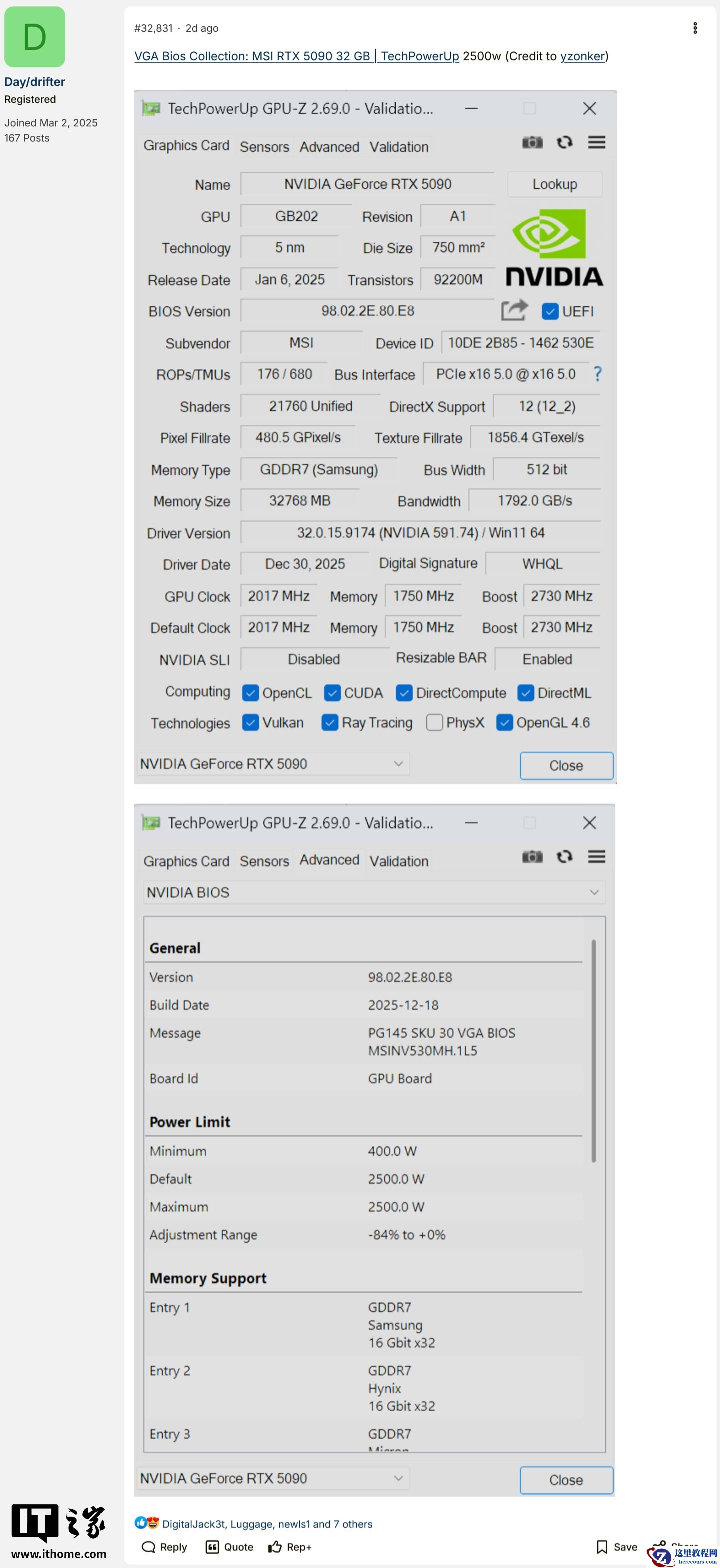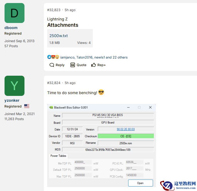 2 月 18 日消息,科技媒体 Wccftech 于 2 月 16 日发布博文,报道称在 800W 和 1000W 版本后,适用于微星 RTX 5090 Lightning Z 显卡的 2500W XOC BIOS 文件近日在网络上流出。
